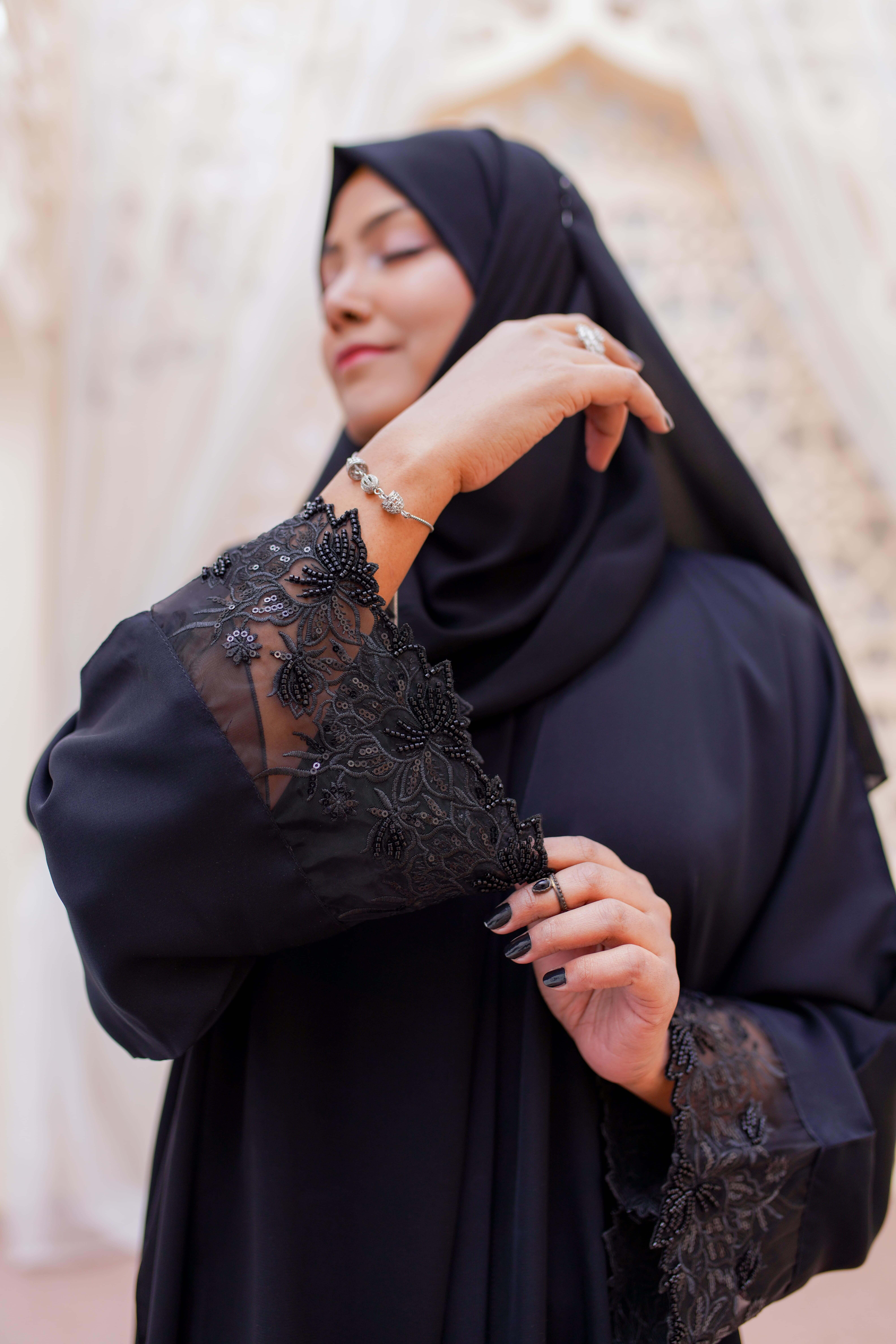 An ideal elegant abaya for all your upcoming events with beautiful beads detailing on the sleeves to give the subtle yet classy look. Stud openers allow easy opening.