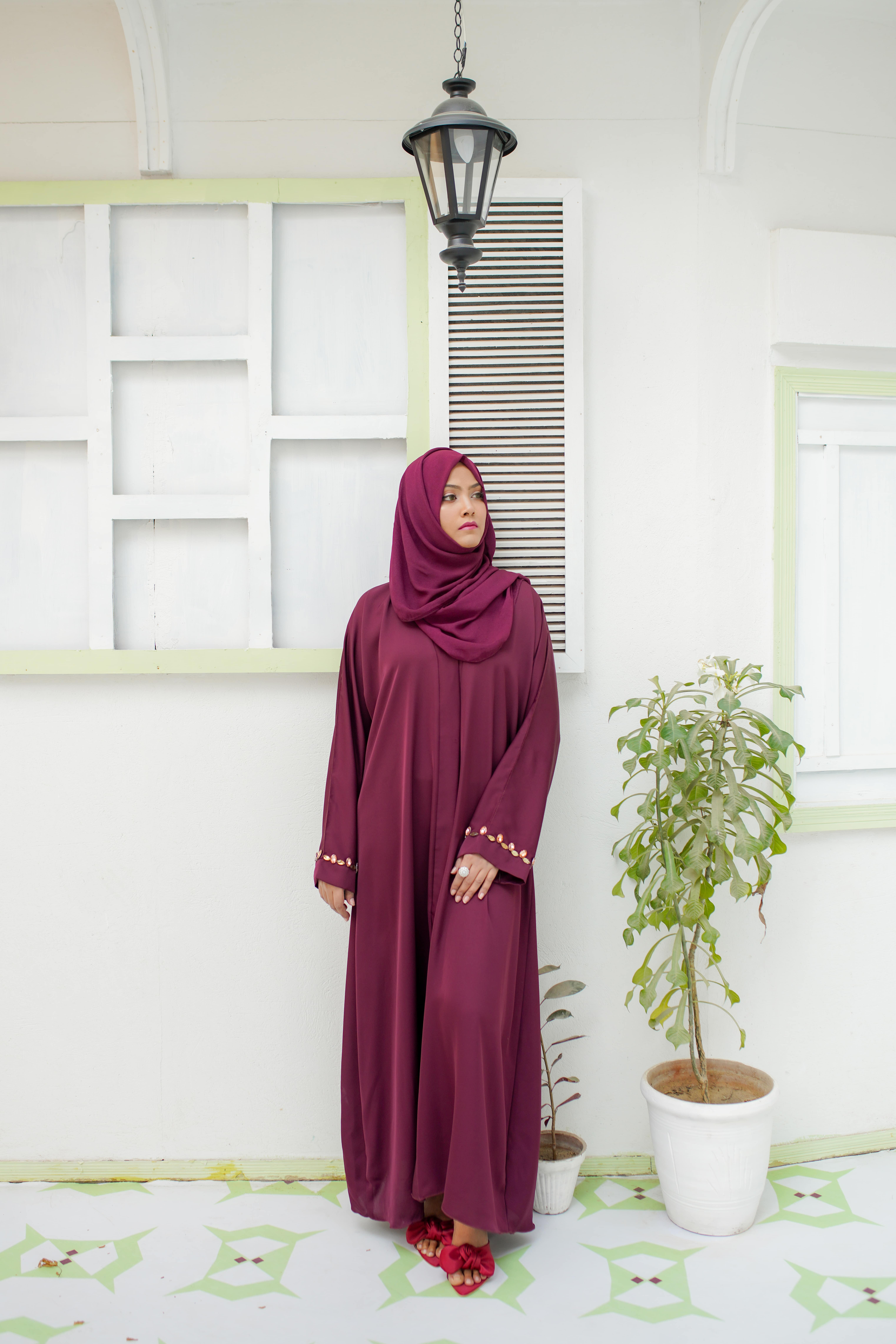 Experience Elegance and exclusivity in our premium embellished open abaya. This luxurious piece of clothing is hand-crafted with stone details on the cuff. Stud fastened buttons are provided.